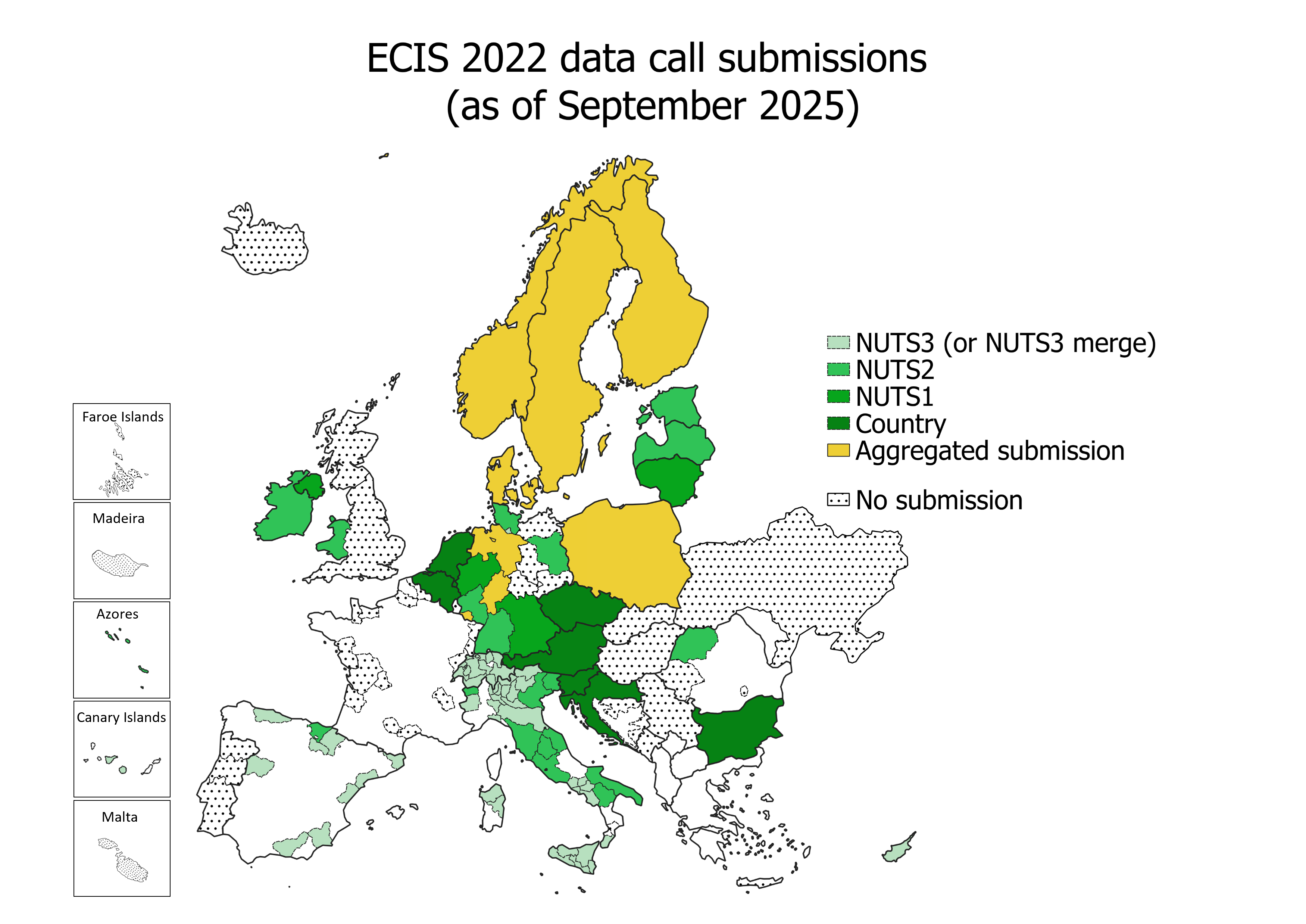 Map interim coverage of ECIS data from cancer registries 18.09.2025.